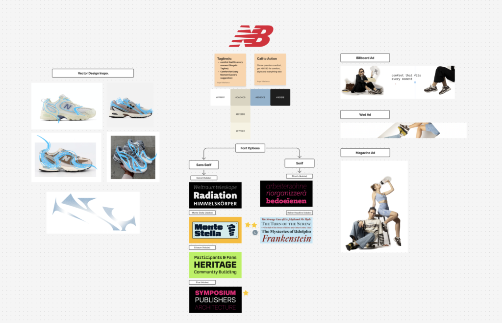 From this point on me and Valentyn worked separately from Angel to develop our own advertising campaign, including magazine, billboard, and web banner ads. We stayed in-line with Angel’s basic concept, but decided we wanted to showcase the simplicity, reliability, and everyday use of the shoes by creating clean, consistent messaging, a call to action in the form of our #nbmoment, and a clear focus on the product. We tweaked one of Angel’s tagline ideas to be a bit more concise, going from “Comfort That Fits Every Moment”, to “Comfort for Every Moment”.